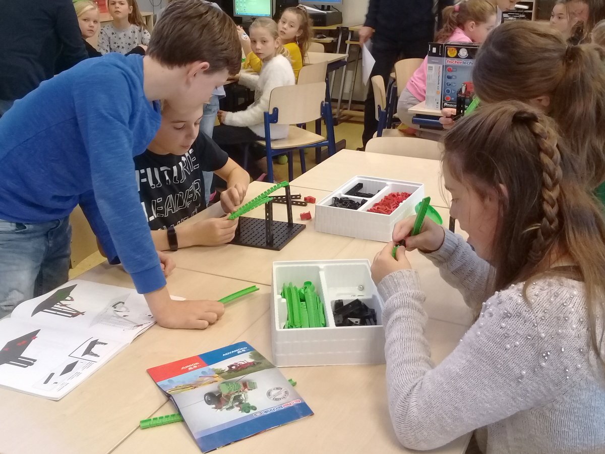 In de kleutergroepen wordt er al veel aan techniek gedaan. Er is een mooie timmerhoek en de kinderen hebben veel soorten constructiemateriaal tot hun beschikking. Verder wordt er gewerkt met probleemstellingen, waar dan een oplossing voor wordt gezocht, indien nodig met proefjes. De kleuters werken op iPads met Osmo en krijgen de eerste beginselen van programmeren mee door te spelen met Beebots.